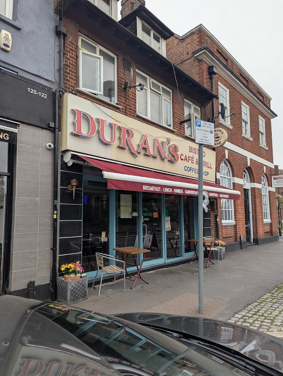 Duran's Bistro Grill is a cozy café nestled in the heart of Bushey, located at 124-126 High St, Bushey WD23 3DE, United Kingdom. It’s the perfect spot for anyone looking for a welcoming atmosphere and a delicious meal, whether you’re grabbing a quick bite, enjoying a leisurely lunch, or starting your day with a hearty breakfast.